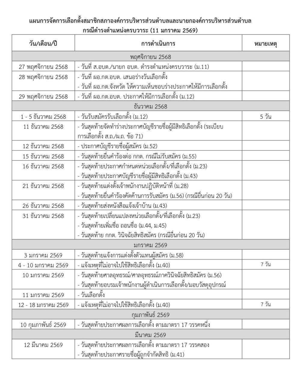 แผนการจัดการเลือกตั้งสมาชิกองค์การบริหารส่วนตำบลและนายกองค์การบริหารส่วนตำบล กรณีดำรงตำแหน่งครบวาระ (11 มกราคม 2569)