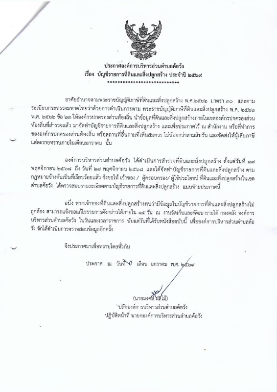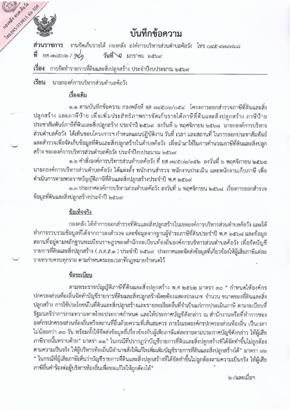 หัวข้อ :: ขอให้ตรวจสอบบัญชีรายการที่ดินและสิ่งปลูกสร้าง ประจำปีงบประมาณ 2569